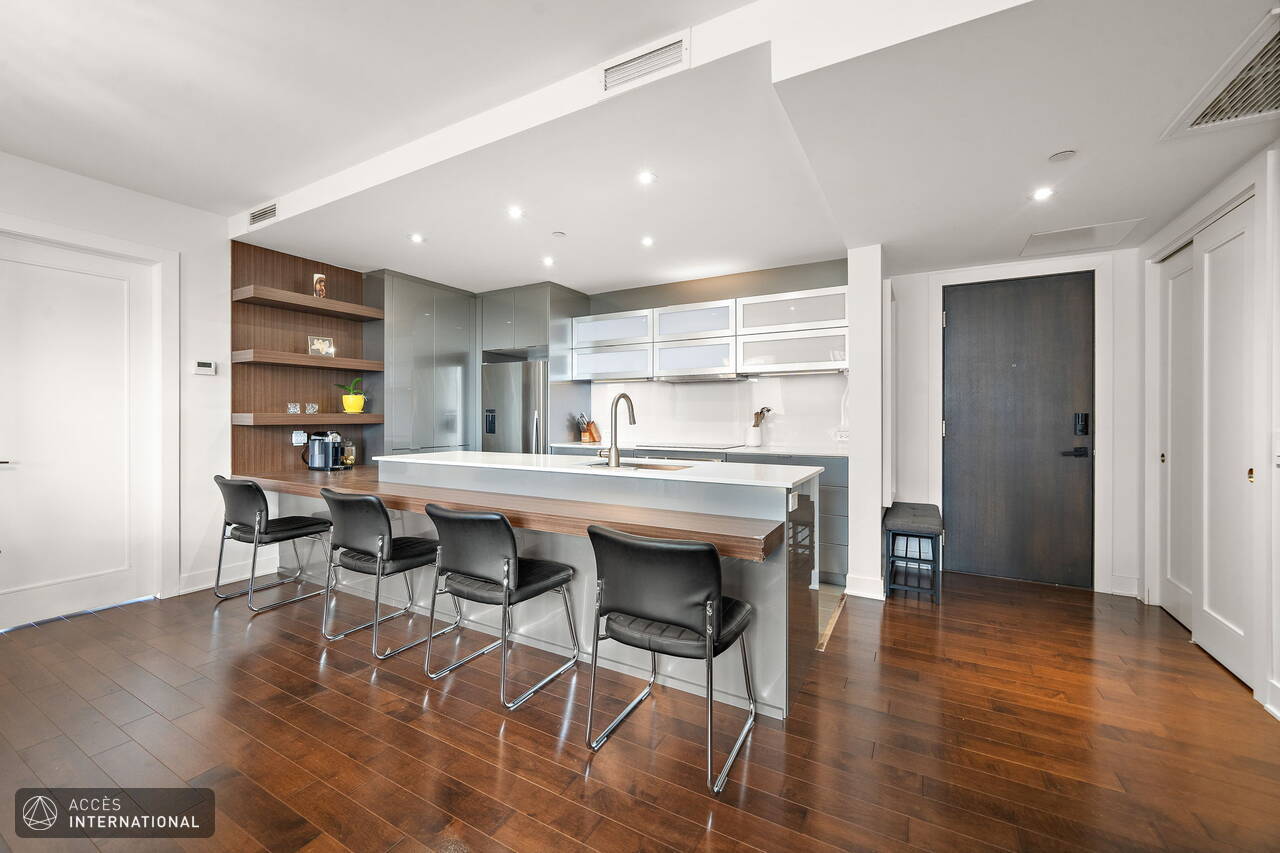 - Contemporary kitchen with breakfast counter and abundant storage, perfect for cooking and entertaining