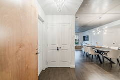-Kitchen with floor to ceiling cabinets, quartz countertop