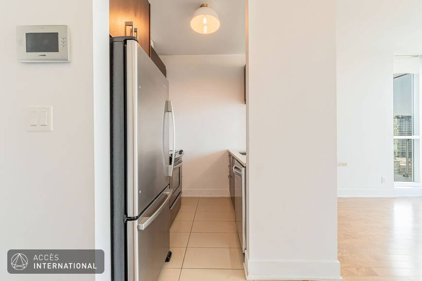 Superbe appartement à louer au centre-ville de Montréal. Il comprend 2 chambres à coucher et 2 salles de bains, dont l'une est attenante à la chambre principale. L'espace de vie optimisé est inondé de lumière grâce à la fenestration du plancher au plafond. Profitez d'une magnifique vue sur la ville. L'Immeuble Altitude vous offre de multiples services comme un salon lounge, une salle d'entraînement, une piscine, et plus encore. Très bien situé et face à la Place Ville-Marie, vivez une immersion urbaine avec toutes les activités et commodités à proximité. Un stationnement au garage est inclus.
