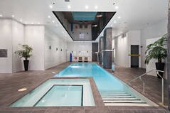 -Un espace spa au design contemporain comprenant une piscine, un jacuzzi, deux saunas (sec et à vapeur) et une salle de massage.