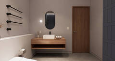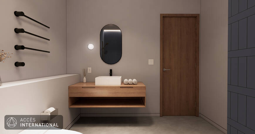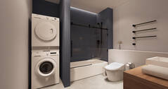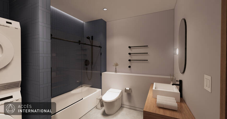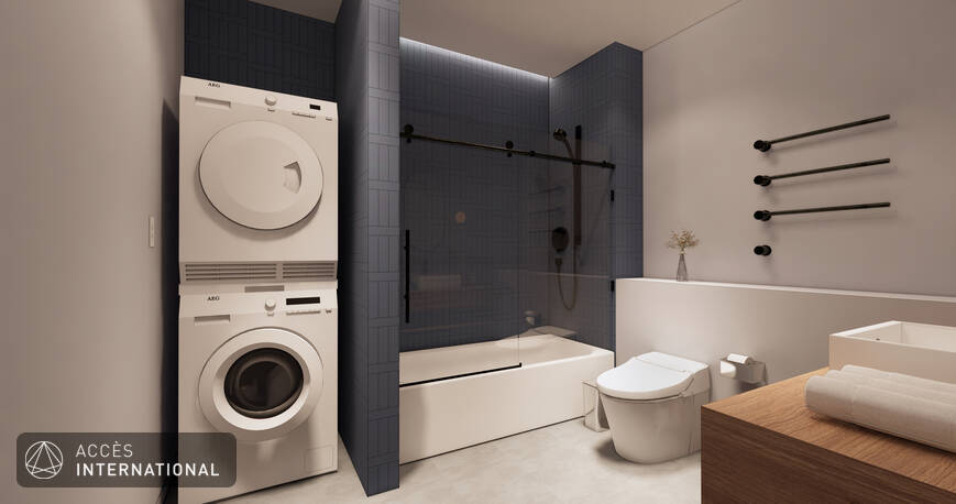 - Salle de bain moderne avec laveuse-sécheuse intégrées