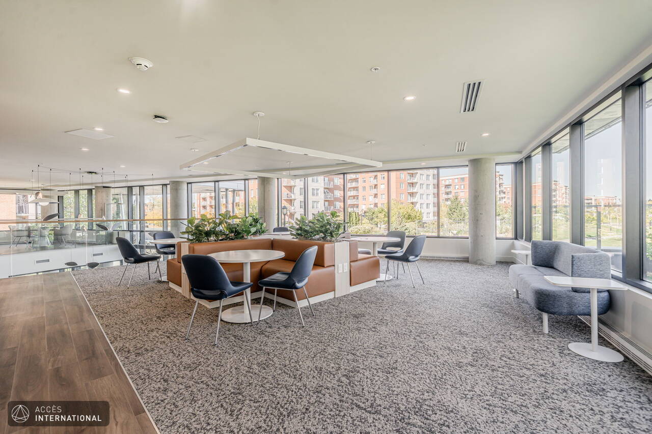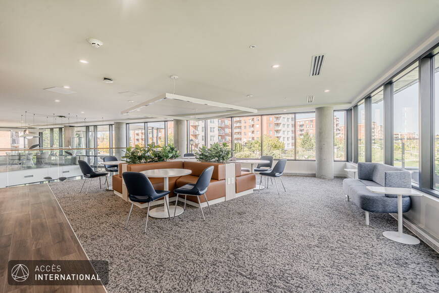 - Bâtiment 4 : salle de conférence, deux bureaux individuels, lounge et salle commune avec tables et banquettes en aire ouverte