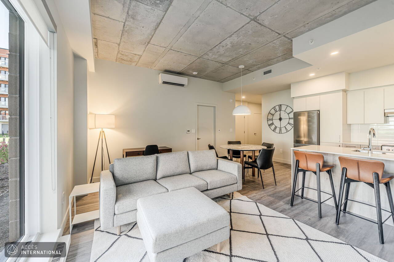 *PROMOTION-2 MOIS GRATUITS* - Superbe appartement neuf à louer à Ville Saint-Laurent. Composé d'une chambres et d'une salle de bain, cet appartement lumineux se distingue par sa cuisine aux espaces optimisés, ses hauts plafonds et sa